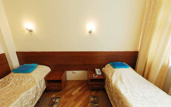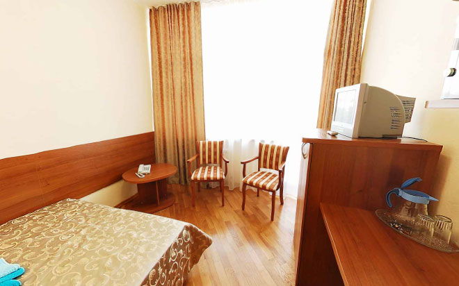 Номерной фонд представлен стандартными двухместными номерами, стандартными одноместными номерами и двухкомнатными двухместными номерами «Люкс». Во всех номерах телевизоры, холодильники, телефоны, санузелы, балконы с видом на море и кондиционеры в номерах «Люкс»